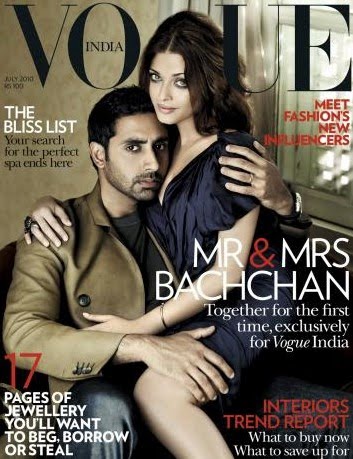 And finally, this 'it' couple of Bollywood will be seen on the cover of the July issue of Vogue.Needles to say that they are looking a million bucks!As is seen on the cover, Abhi has donned jackets teamed with tees while Aishwarya's dresses are simply short yet classy. This surely is yet another classy cover by Vogue.